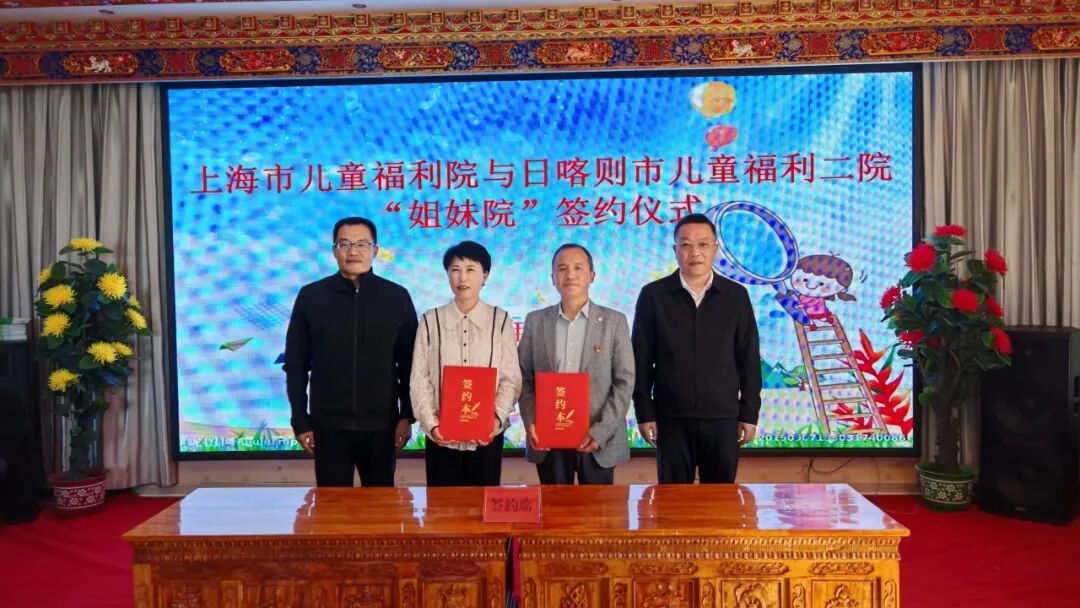 沪藏两地儿童福利事业合作发展也是本次调研组重点调研内容之一。调研组在上海市第十一批援藏干部联络组组长、日喀则市委副书记、常务副市长沈敏同志,日喀则市民政局党组副书记、局长旦增曲珍同志的共同陪同下,到访日喀则市儿童福利二院,开展实地调研慰问活动,并举办上海市儿童福利院与日喀则市儿童福利二院的“姐妹院”结对协议签约仪式。根据协议,双方将建立常态化合作机制,重点围绕儿童互动与成长、专业交流与培训、资源共享与支持建等方面开展深度合作,通过资源互通、优势互补,提升两地儿童福利服务专业化水平。