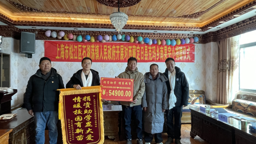 12月2日,上海市松江区石湖荡镇人民政府心系西藏定日县克玛乡教育事业发展,定向捐赠帮扶资金54900元,专项用于克玛乡南果完小教职工之家家具采购,以深厚结对情谊为纽带,切实筑牢校园服务保障防线,为基层教育工作者营造更优质的工作生活环境。