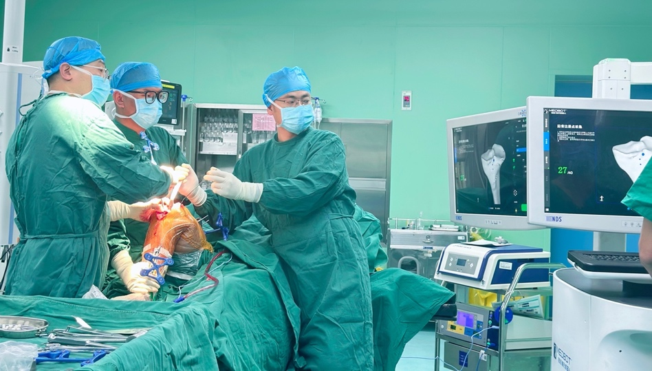 翟赞京主任术中带教本地医生使用机器人开展膝关节置换手术