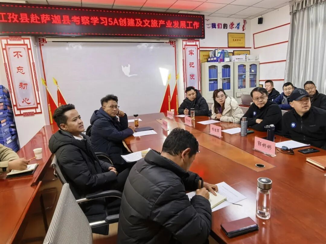 在随后召开的座谈会上,江孜和萨迦双方围绕旅游业态升级、游客画像分析、智慧景区建设等议题展开交流。杨胜军对萨迦县毫无保留的经验分享表示感谢,并指出萨迦县依托“帝师故里、雪域敦煌”的文化IP,通过高端文化深度游产品打造与智慧服务体系构建,为江孜县提供了宝贵借鉴。双方一致认为,应加强资源互补与经验互鉴,共同探索日喀则文旅产业协同发展新路径。