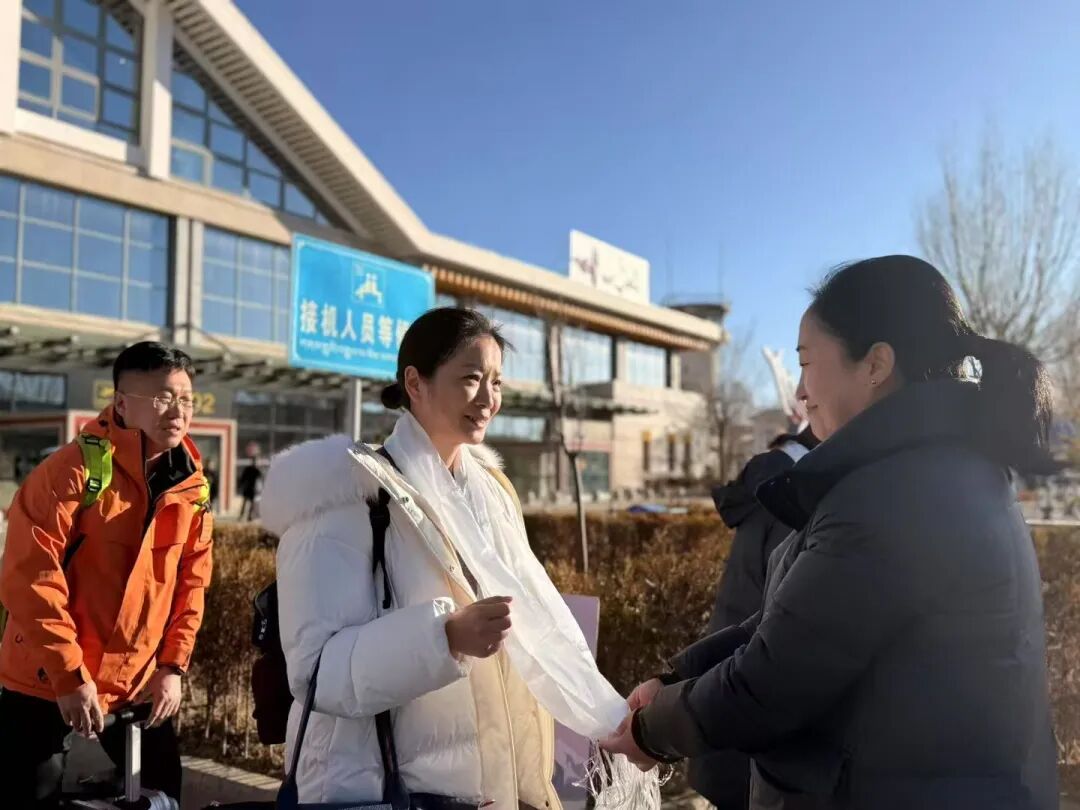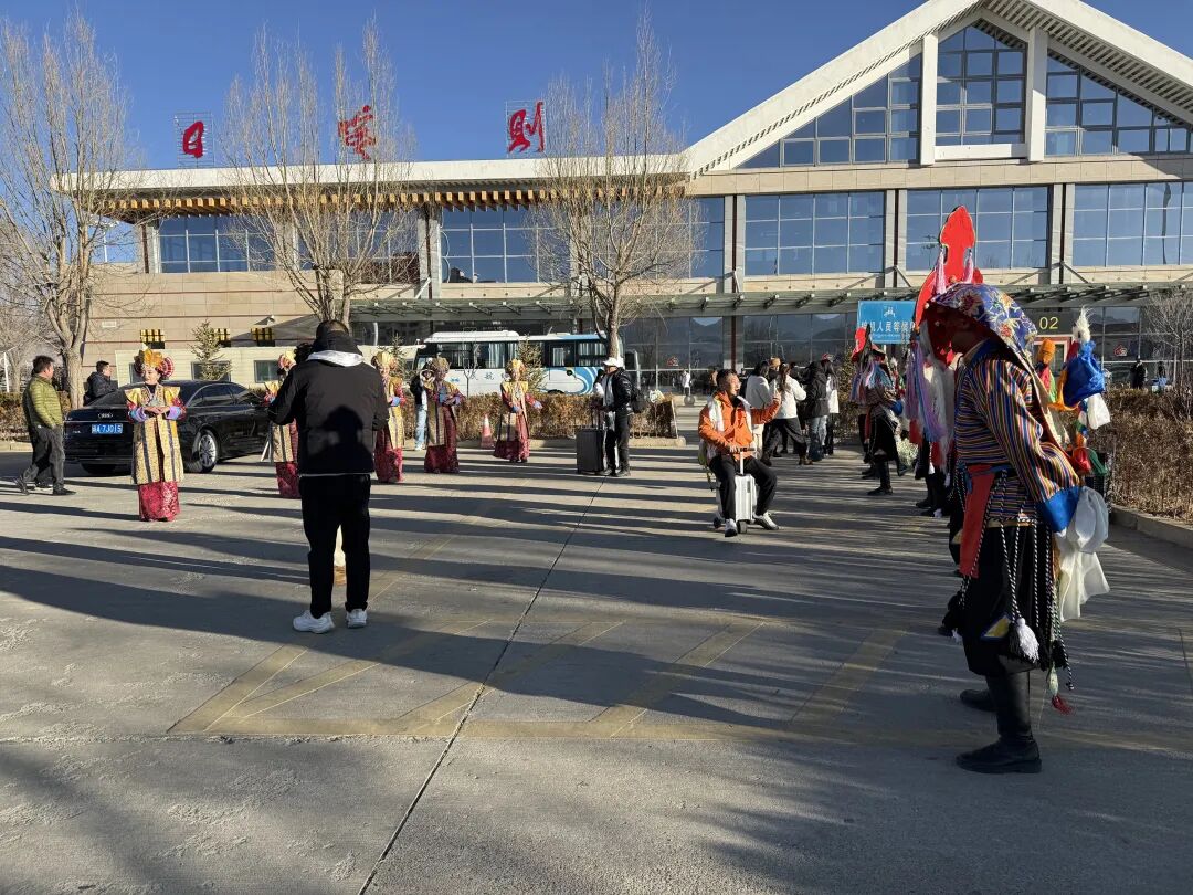 为迎接首批包机游客,日喀则市文旅局在和平机场精心举办了欢迎仪式。市民族艺术团演员身着民族服饰,通过载歌载舞的形式,用悠扬的歌声、优美的舞姿诠释着高原儿女的热情与豪迈;工作人员有序为每位游客献上洁白的哈达、赠送特色文旅礼品,一声声真挚的“扎西德勒”回荡在机场,让远道而来的游客深切感受到雪域高原的温情与暖意。