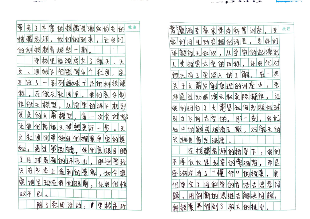 学校里陆续成立了航天、天文、四轴飞行器等多个社团,还开设了一系列趣味十足的科技课程。在航天社团里,我们亲手制作航天模型,从简单的纸飞机到复杂的火箭模型,每一次尝试都让我们离航天梦想更近一步。天文社团则带领我们探索宇宙的奥秘,通过望远镜,我们亲眼目睹了月球表面的环形山,那些曾经只在书本上看到的景象,如今真实地呈现在我们眼前,让我们惊叹不已。