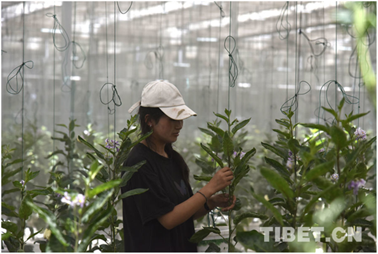 图为日喀则市珠峰现代农业科技创新博览园工人在打理果蔬 摄影:王媛媛