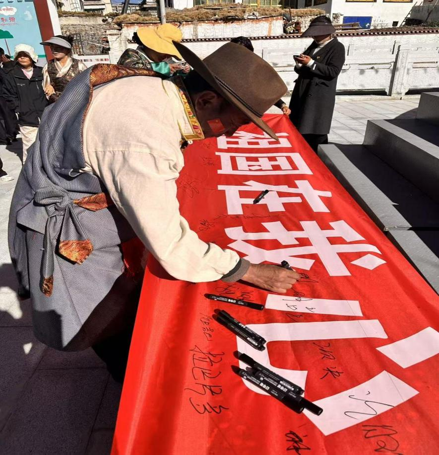 各边境县新时代文明实践中心(所、站)结合地域特色,重点开展“我与国旗、界碑合张影”特色活动,以沉浸式体验强化国土意识与爱国情感。工作人员组织党员干部、农牧民护边员、青少年学生与边防官兵一同前往界碑所在地,用镜头记录与国旗、界碑的温暖瞬间。护边员结合自身守边经历,向青少年讲述守护国土的重要意义,分享边境地区发展变迁,让“祖国领土寸土不让”的信念深入每一位参与者心中。大家还在“祖国在我心”签名墙上郑重签名,以实际行动表达守护家园、建设祖国的坚定决心。全市当天共组织此类合影活动46场,覆盖群众超1.9万人次。