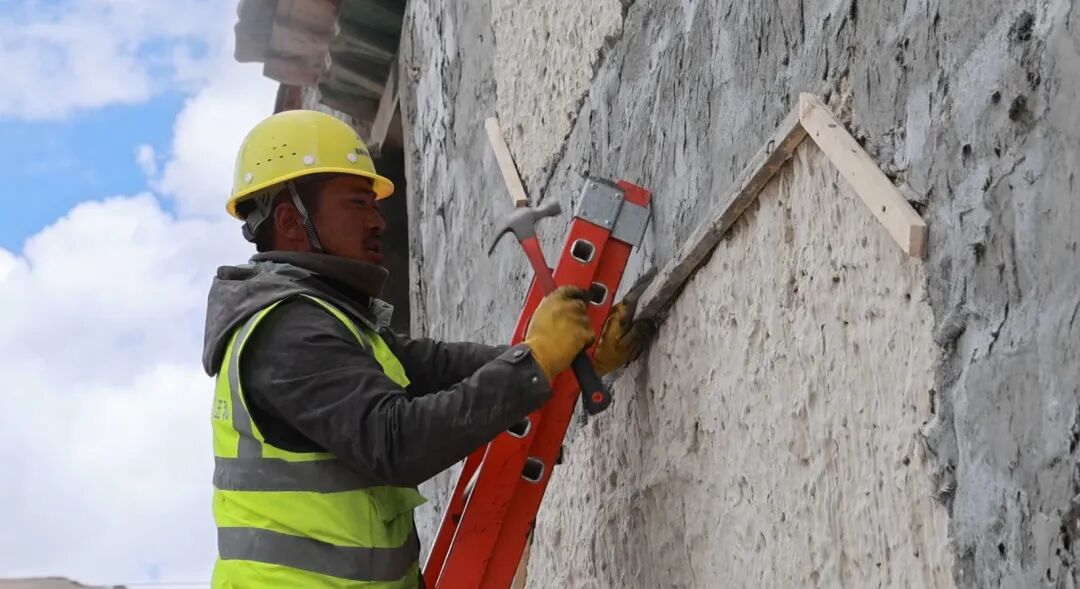 在萨嘎县夏如乡夏如村,施工队伍以严谨细致的态度,严格遵循每户房屋的设计图纸,有条不紊地推进工程建设。