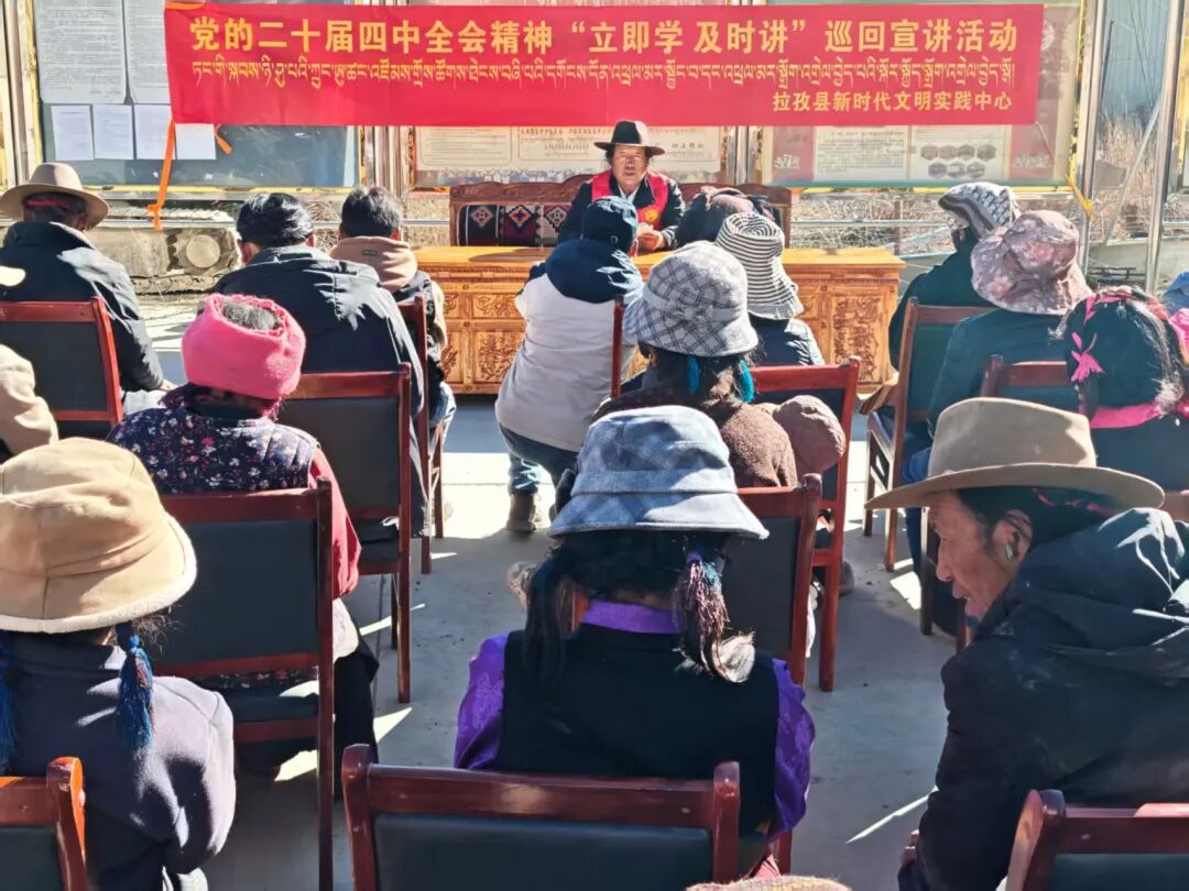 台下,村民格桑平措听得聚精会神,不时竖起大拇指:“听了宣讲才明白,四中全会说的每一项政策都连着我们的生活!心里踏实了,干活更有劲儿,跟着共产党走,日子准能越过越红火!”