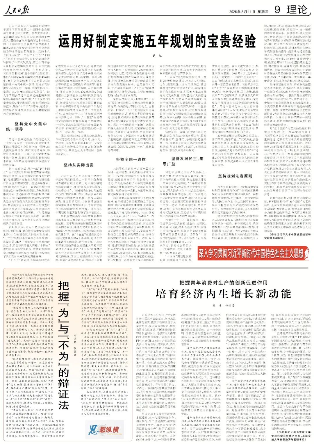 “十五五”规划建议围绕新时代新征程党的中心任务进行布局,通篇贯彻党的二十大对中国式现代化的系统谋划和部署,充分体现了党中央推动经济社会发展的新思路、新意图。比如,围绕因地制宜发展新质生产力,对加快高水平科技自立自强进行系统部署,要求统筹教育强国、科技强国、人才强国建设,提升国家创新体系整体效能,全面增强自主创新能力,抢占科技发展制高点等。“十五五”规划建议中关于扩大内需、建设强大国内市场等方面的重要部署,在去年底举行的中央经济工作会议上被细化部署为今年经济工作的重点任务,成为推动“十五五”实现良好开局的重要着力点。同时,“十五五”规划建议突出强调坚持和加强党中央集中统一领导,提高党领导经济社会发展能力和水平,持续用党的创新理论统一思想、统一意志、统一行动。